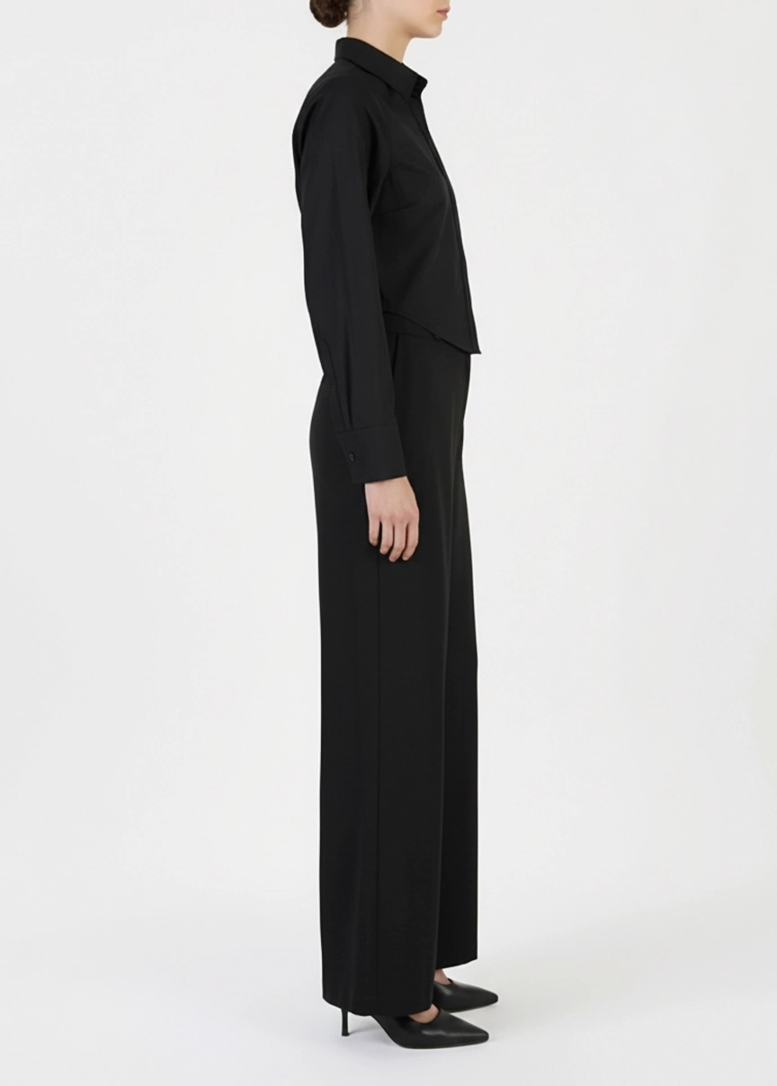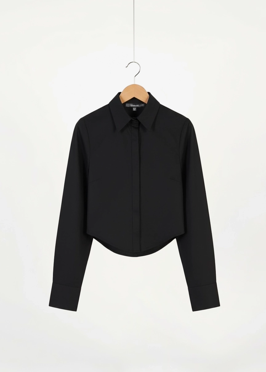 این شومیز کراپ زنانه با طراحی خاص پشت‌باز و بند رگلاژی، انتخابی متفاوت و شیک برای استایل‌های مینیمال، رسمیِ مدرن یا ست‌های مهمانی است. فرم هلالی در پیش و پشت، جذابیت بصری لباس را افزایش داده و با هر حرکت، جلوه‌ای لطیف و زنانه ایجاد می‌کند.