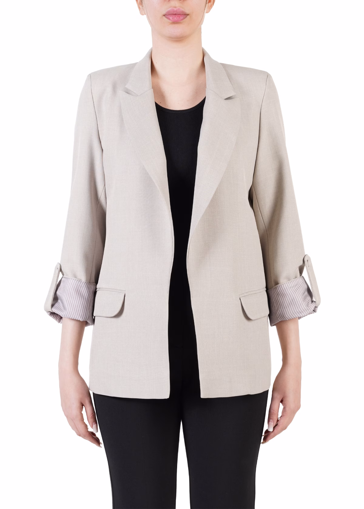 آستین: دارای پاگون که با دکمه ثابت می‌شود، مناسب برای استفاده با فرم آستین بالا زده