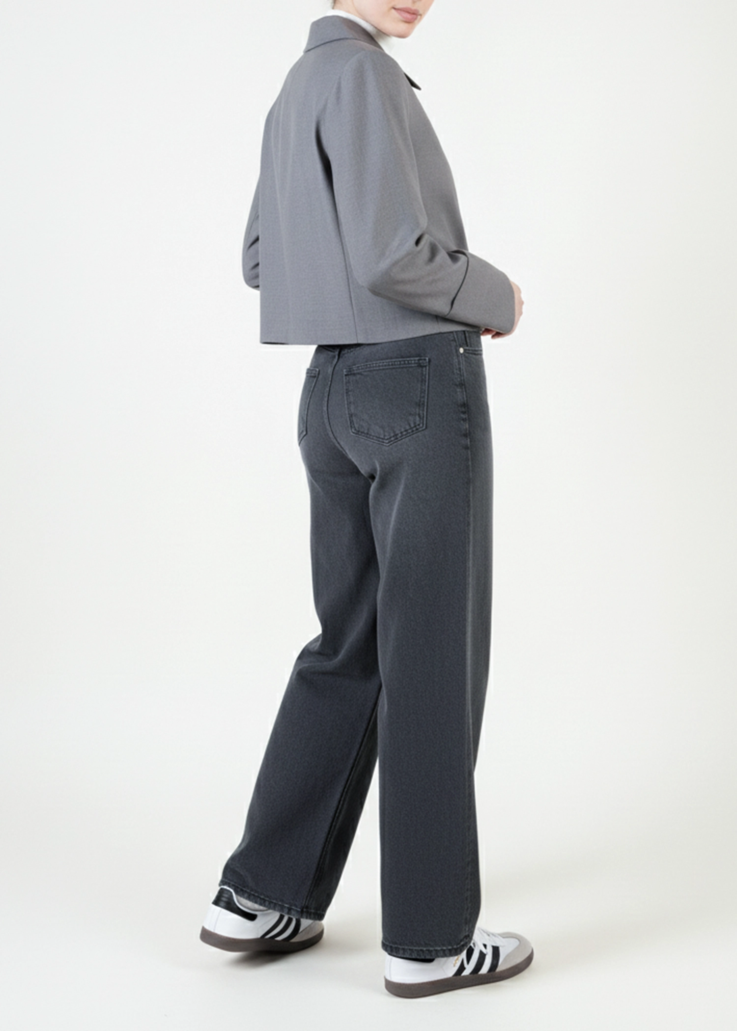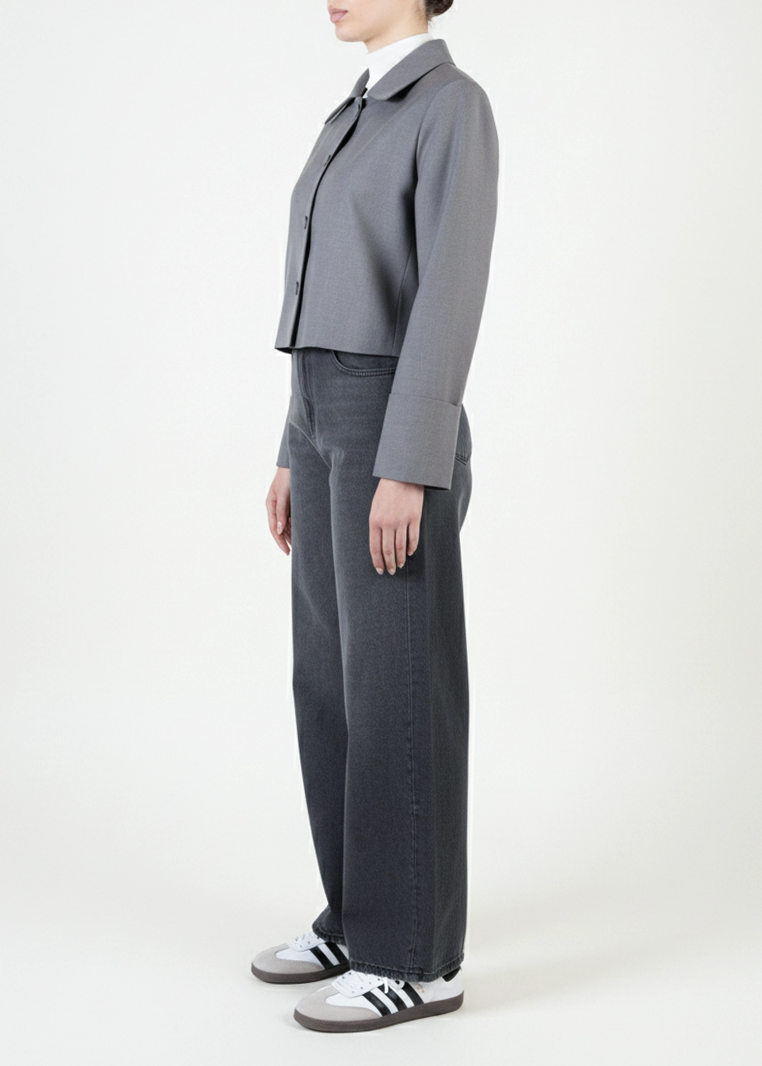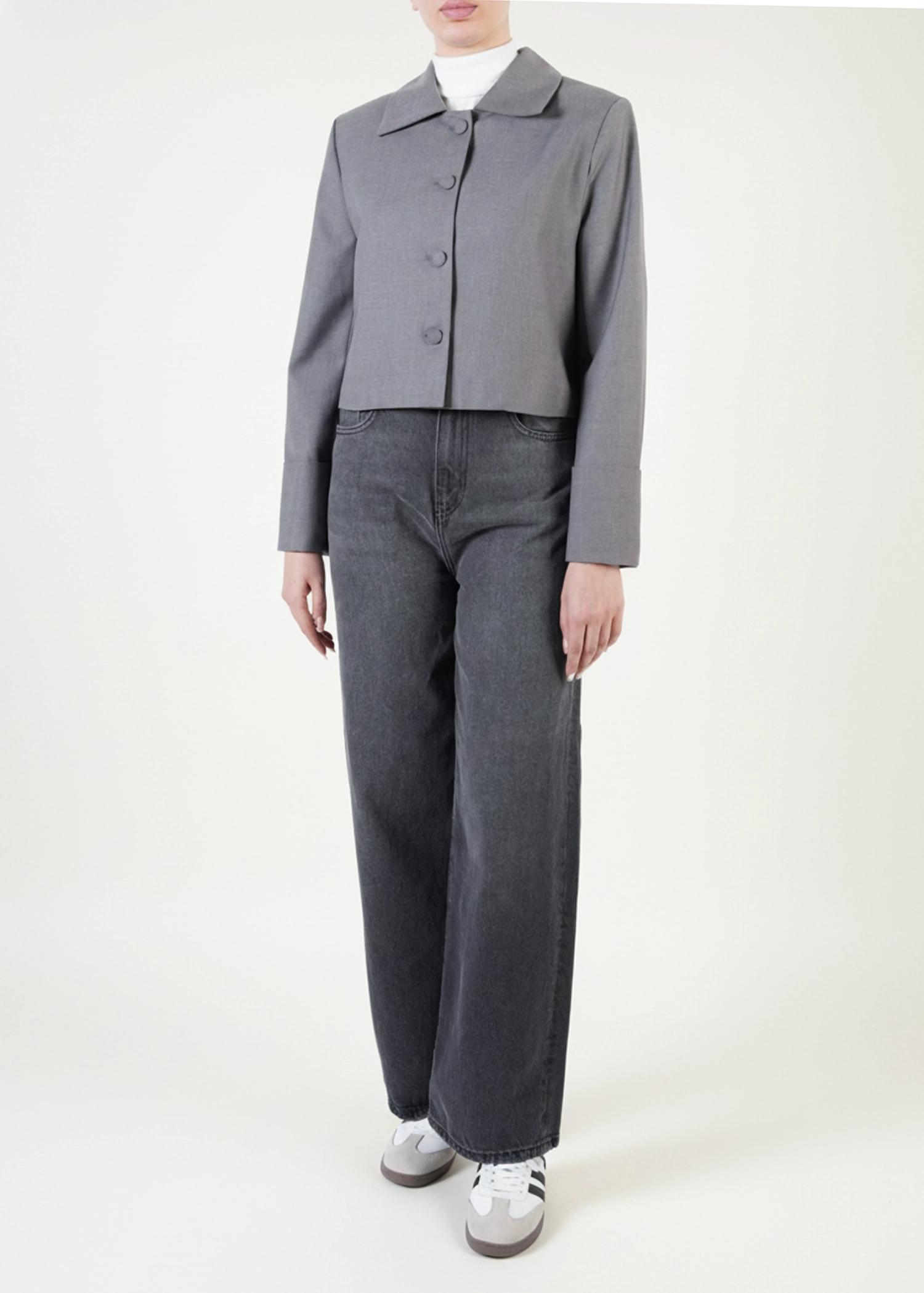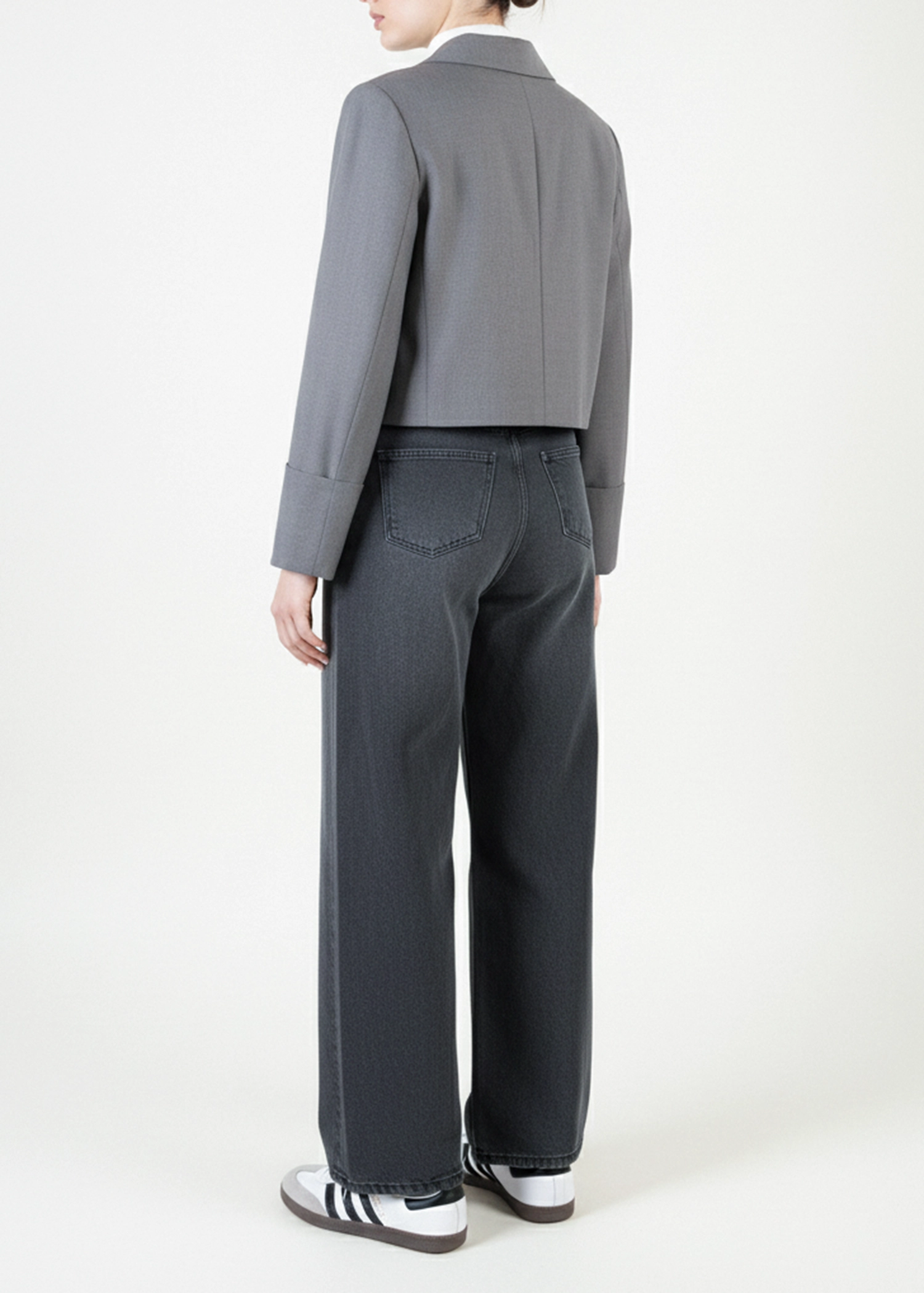 کت خوشدوخت و خاص برای استایلهای رسمی و نیمهرسمی با برش راسته و قد کراپ که ظاهری مدرن و جذاب میدهد.
