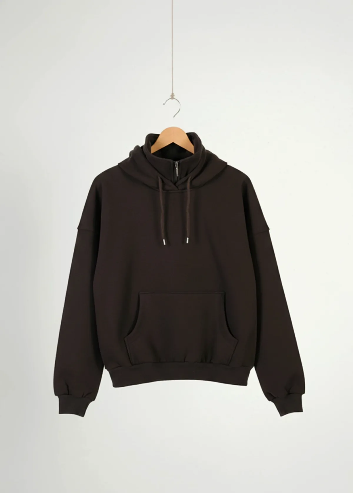 طراحی یقه آن مهمترین ویژگی شاخص لباس است: یک یقه ایستاده ۱۰ سانتی با زیپ که از پارچه فریال درشتبافت ساخته شده و علاوه بر زیبایی، عملکرد گرمایشی فوقالعادهای دارد. روی این یقه، یک کلاه جداگانه قرار گرفته که ظاهر هودی را خاصتر میکند.