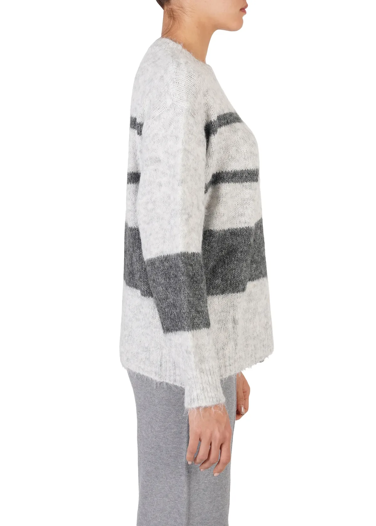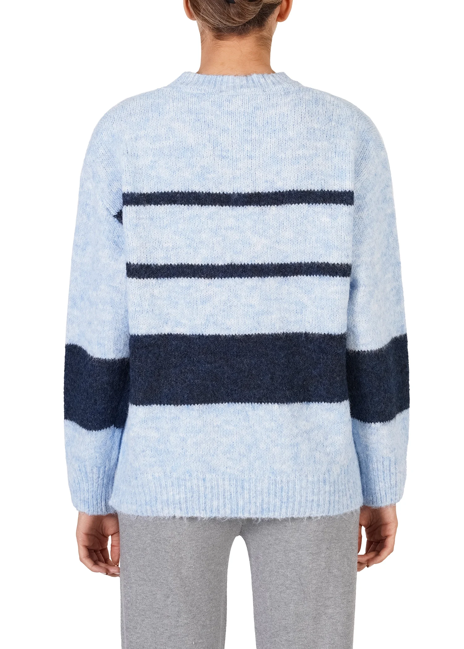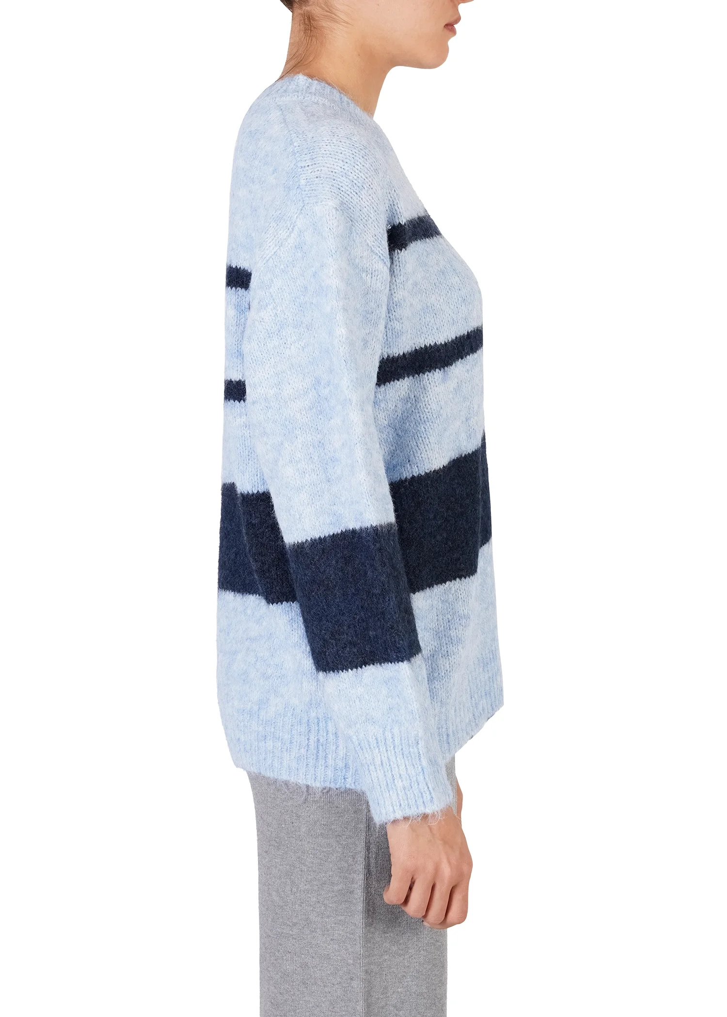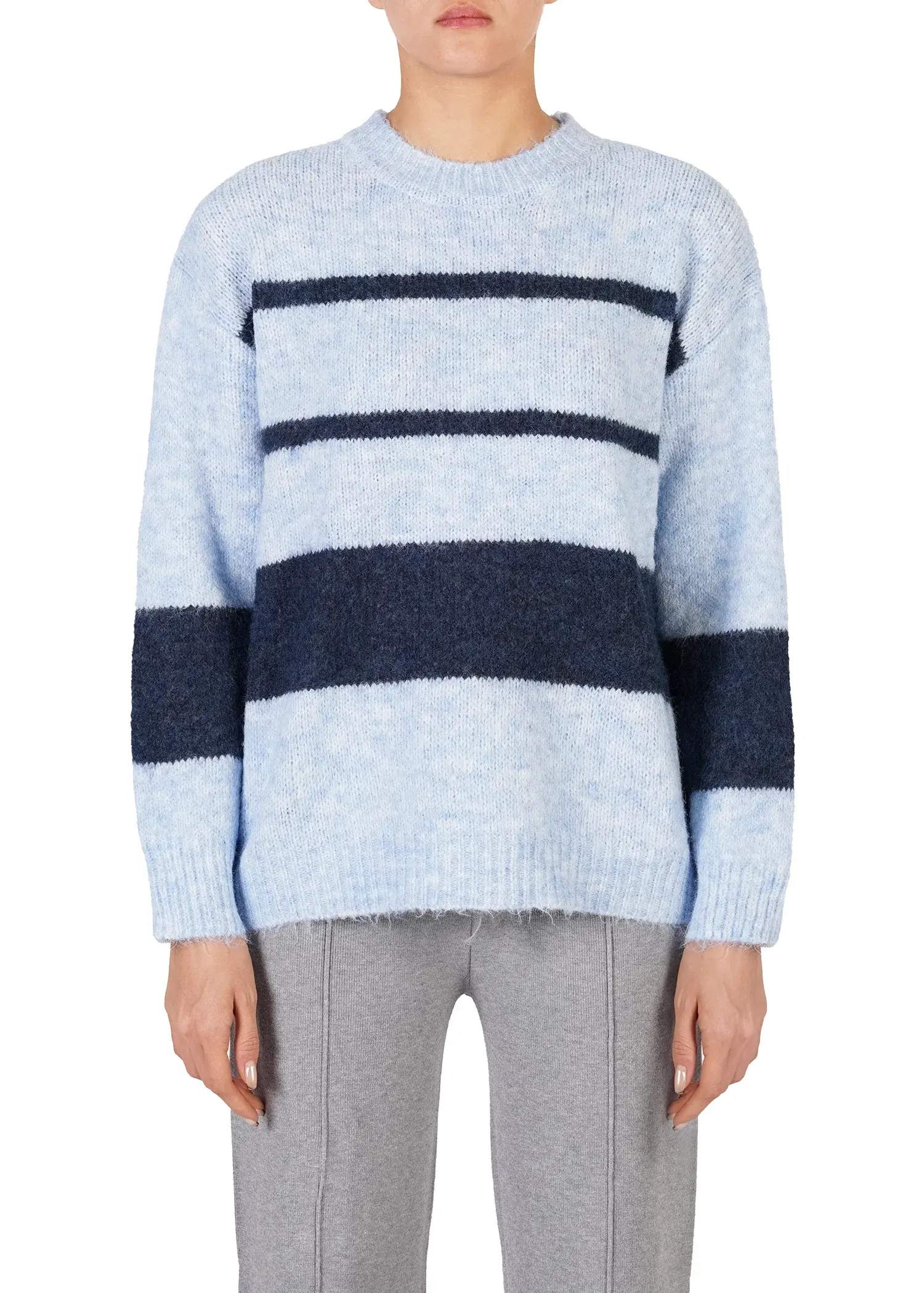 این بافت زنانه با طرح راهراه پهن و فیت کامفورت، گزینهای ایدهآل برای روزهای سرد سال است. طراحی ساده اما چشمنواز آن، با ترکیب رنگهای خنثی و ملایم، به راحتی با سایر آیتمهای کمد لباس هماهنگ میشود.