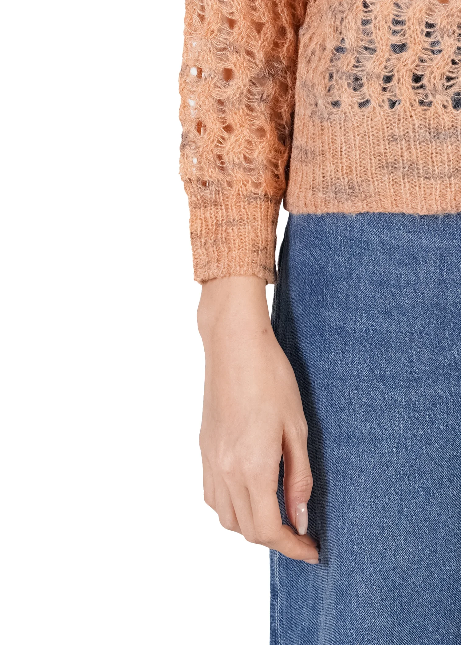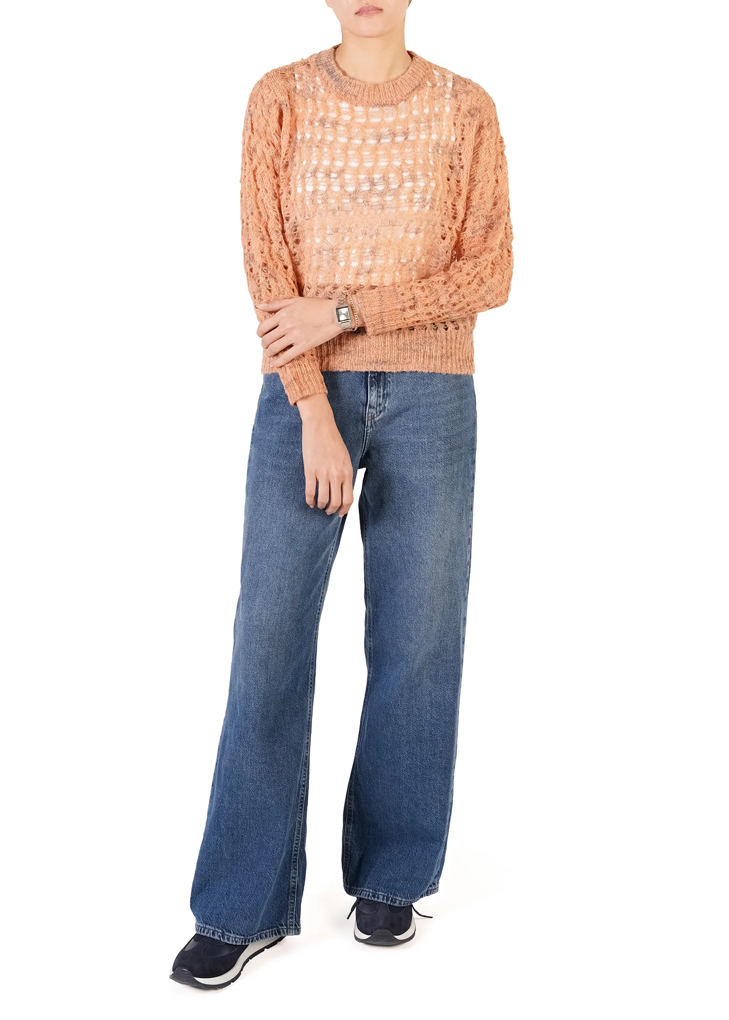 این بافت را میتوانید با شلوار جین یا دامنهای راسته ترکیب کنید. برای استایل ترندیتر، با شلوار پارچهای و نیمبوت بپوشید.