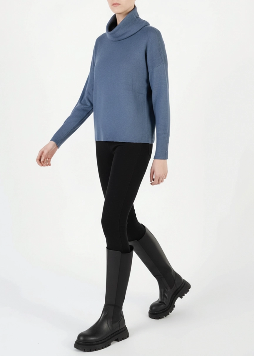 این یقه اسکی را میتوانید با شلوارهای جذب یاشلوار پارچهای راسته ست کنید. ترکیب آن با بوت ساقبلند یا نیمبوت چرمی، استایلی شیک و روزمره برای محیط کار یا استفاده روزانه ایجاد میکند. برای ظاهری لایهایتر، میتوانید روی آن پالتو یا کت کوتاه بپوشید.
